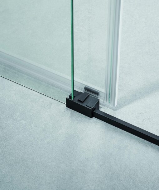 Esta mampara de ducha está equipada con un sistema de liberación de hojas integrado en el guiador inferior, permitiendo dejar las puertas libres de la sujeción inferior y facilitando así la limpieza.