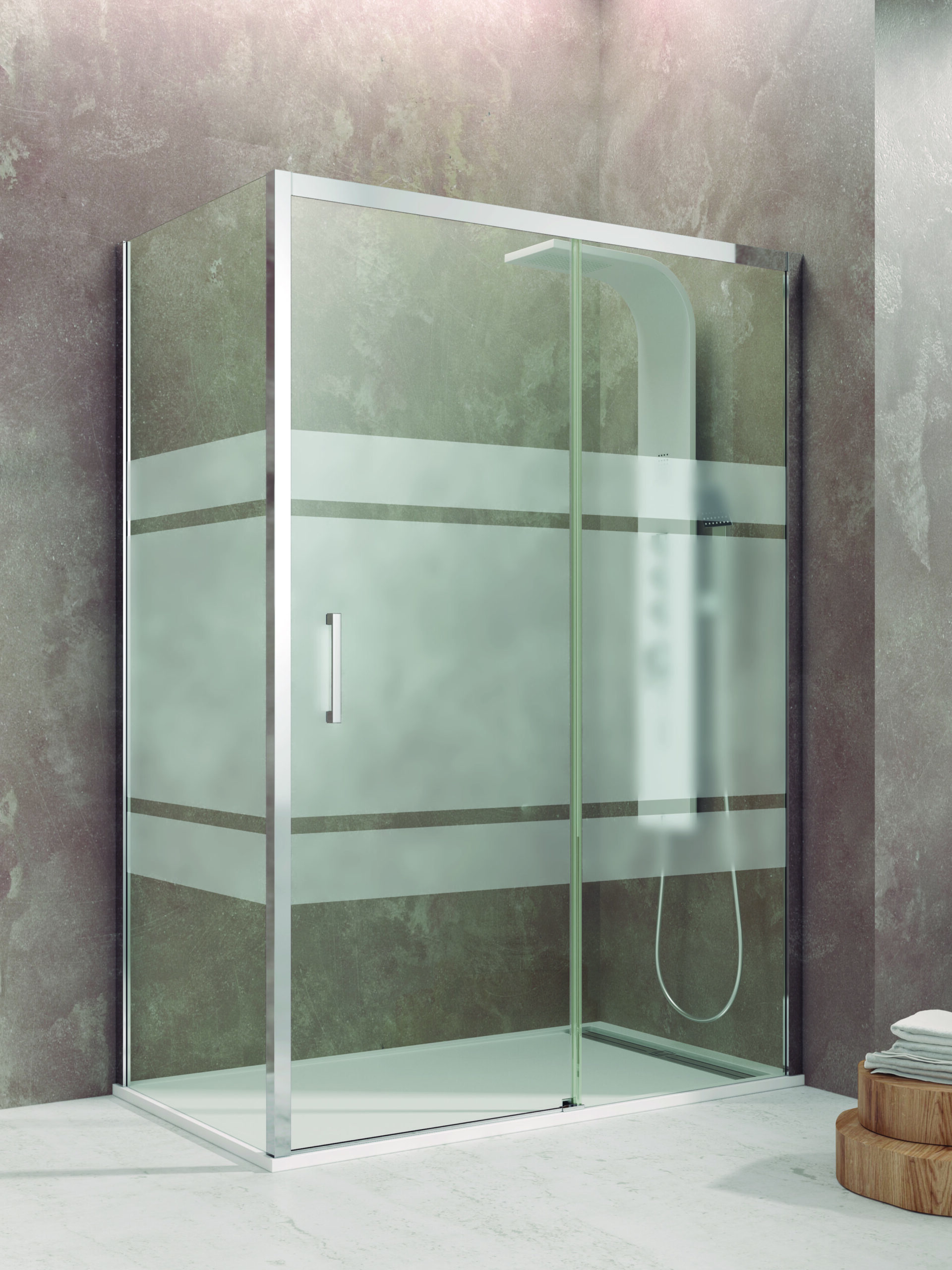 Este modelo se caracteriza por su perfilería minimalista recta y por ser la única mampara enmarcada en aluminio construida íntegramente con cristales de 8mm + 6mm, lo que le da una estabilidad optima a sus hojas correderas, así como por su sistema de cierre con magnético. Al mismo tiempo incorpora guia inferior con pulsador que nos permiten liberar la hoja para facilitar la limpieza .