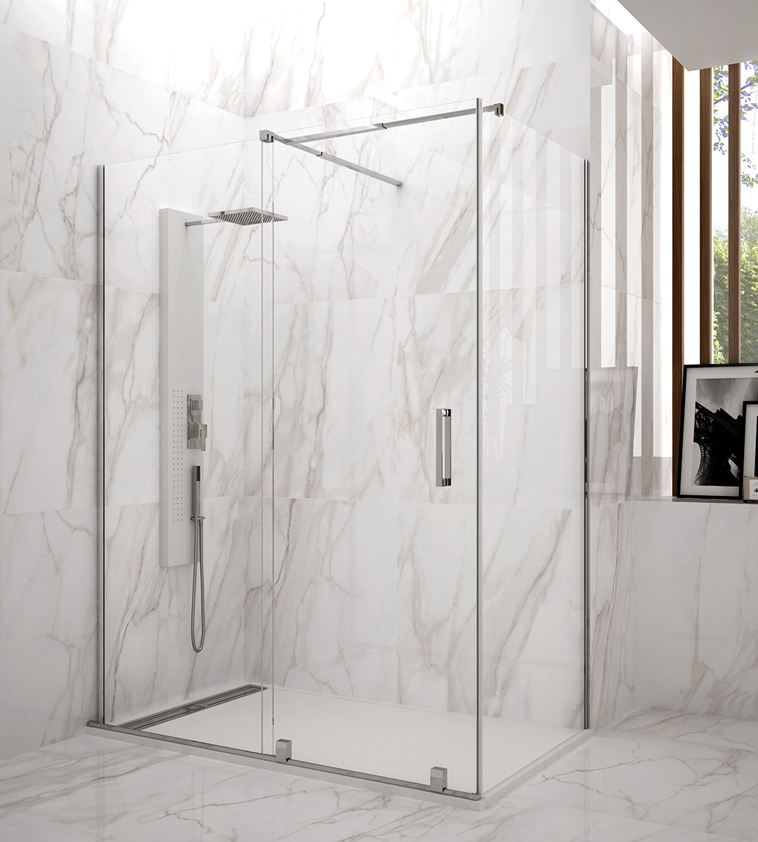 Mampara de ducha con cristales de 6 mm + 8mm en Fijo Lateral 90º