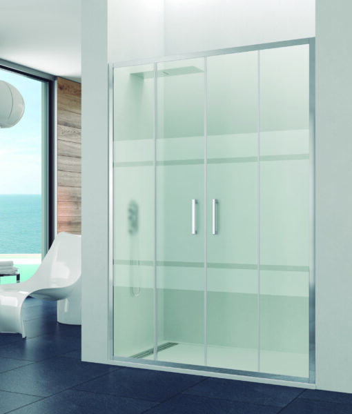 Este modelo se caracteriza por su perfilería minimalista recta y por ser la única mampara enmarcada en aluminio construida íntegramente con cristales de 8mm + 6mm, lo que le da una estabilidad optima a sus hojas correderas, así como por su sistema de cierre con magnético. Al mismo tiempo incorpora rodamientos inferiores con pulsador que nos permiten liberar la hoja para facilitar la limpieza .